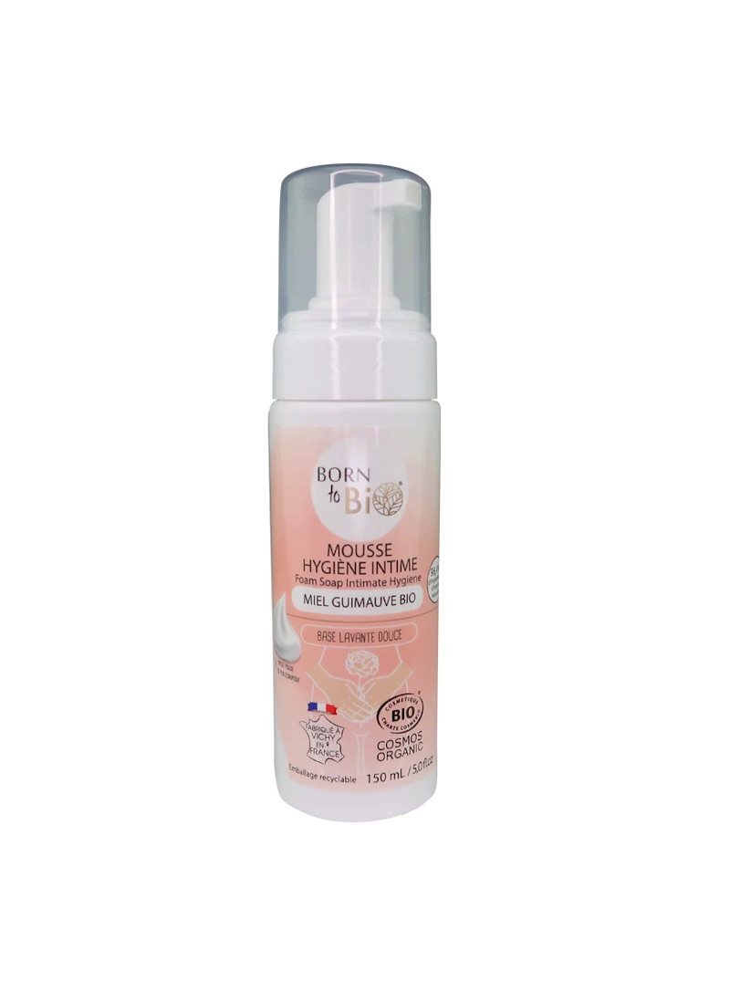 Mousse lavante Certifiée Bio, au miel et guimauve, à la texture douce et légère, pour l'hygiène intime, à base d'eau d'Orge bio, miel d'acacia et extraits de Guimauve.