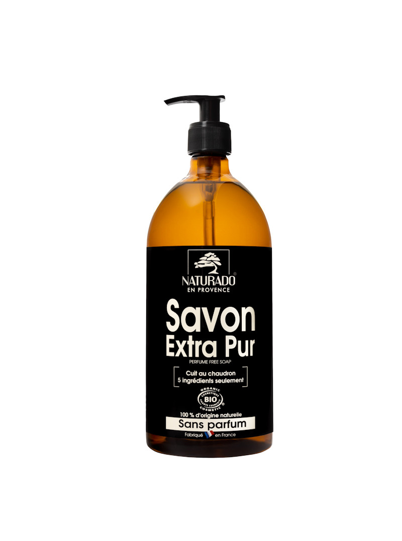 Fabriqué à l'ancienne au chaudron, le Savon Liquide Neutre Naturado est conseillé pour un usage quotidien.