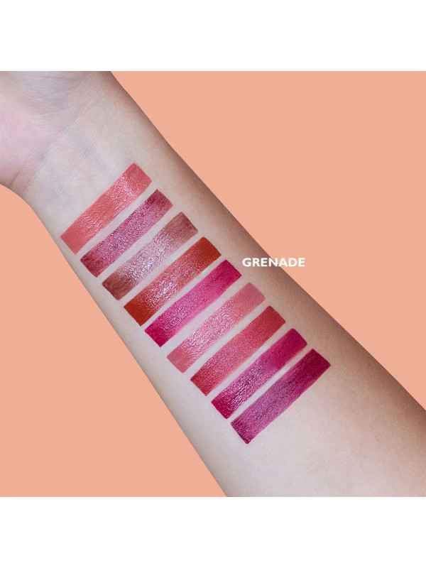 INCI : RICINUS COMMUNIS (CASTOR) SEED OIL*, EUPHORBIA CERIFERA (CANDELILLA) WAX, HYDROGENATED OLIVE OIL STEARYL ESTERS, CI 75470 (CARMINE), OLEIC/LINOLEIC/LINOLENIC POLYGLYCERIDES, LIMONENE, CI 77891 (TITANIUM DIOXIDE), CI 77492 (IRON OXIDES), CI 77491 (IRON OXIDES), CITRUS GRANDIS (GRAPEFRUIT) PEEL OIL*, LINALOOL